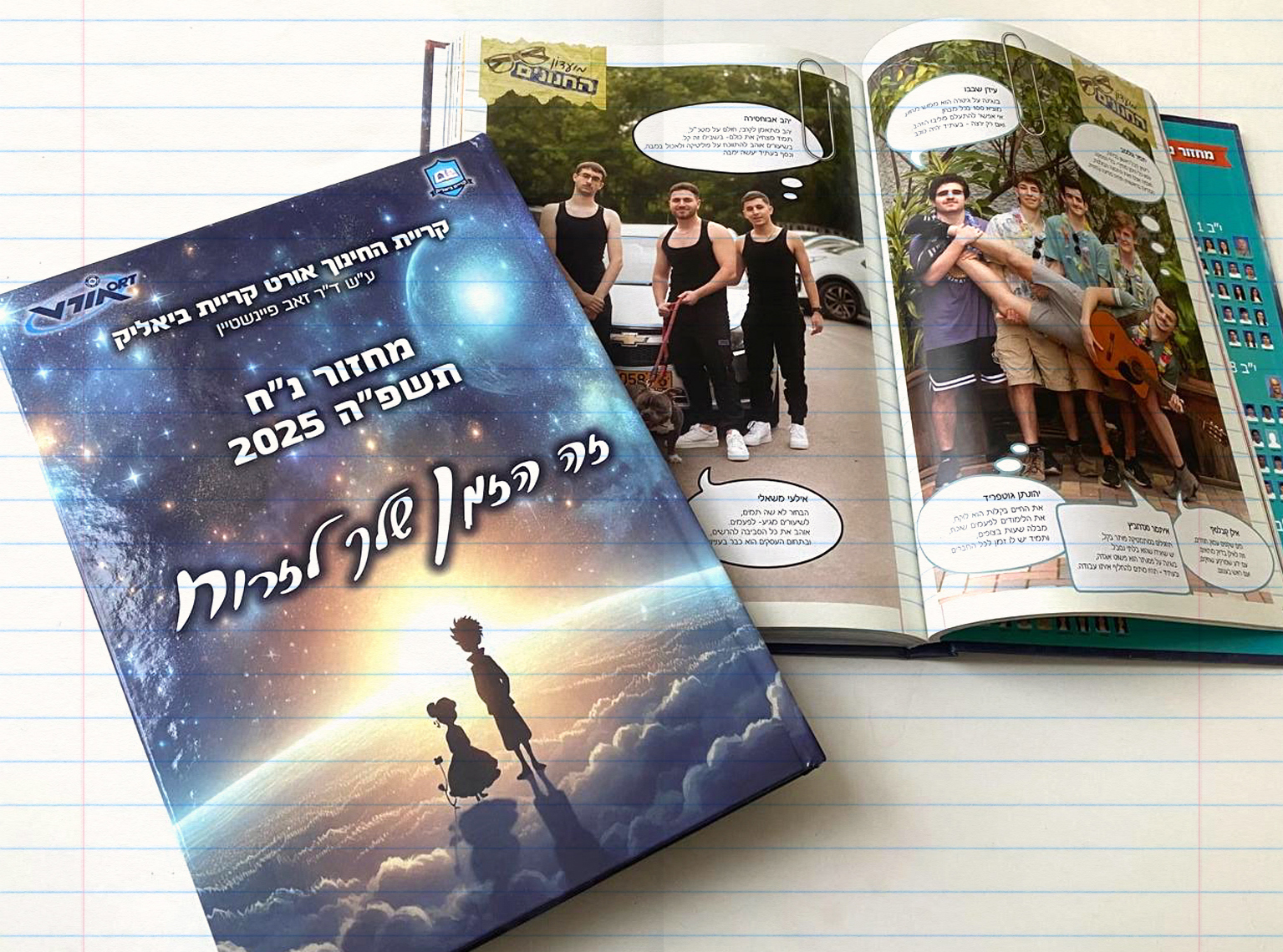 עיצוב ספרי מחזור מותאמים אישית לכל נושא שנתי בו עסקה השכבה, בין אם זה בתקופת הקורונה, האירוויזיון או עצמאות לישראל. כל ספר מקבל טיפול ספציפי החל מעיצוב הכריכה, דבר המנהל, המורים וההורים, דרך עמודי הפנים ושילוב החמשירים. בחלק מבתי הספר ההפקה כללה גם את הצלם.